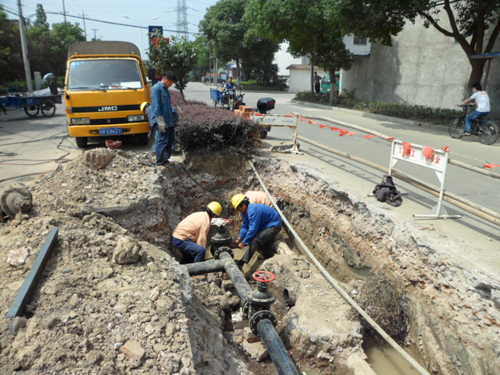 針對這種情況,長涇營業所積極尋求解決方法,在取得公司的大力支持下,決定對該片區實施管網改造,并會同設計所,多次查看現場、分析管道走向、走訪用水企業,科學設計新的供水管網圖紙,施工人員及時進場施工,廢除舊供水管道,結合戶表改造,重新輔設新管網。