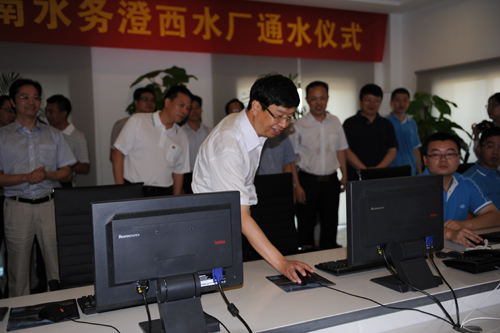 8月17日,江陰市委副書記、市長沈建,副市長封曉春一行蒞臨澄西水廠,上午9:00在中心控制室,沈市長親手開啟通水啟動鍵,標志著江陰澄西水廠供水工程一期日供水能力10萬立方米順利竣工通水,投入正式運行。當天,市政府發改委、財政局、公用局等部門,臨港街道等單位,公司領導和部分部門負責人,工程建設工作小組等30多人參加通水儀式。
