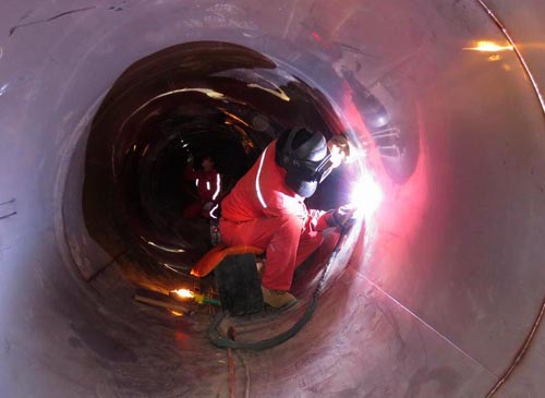 9月10日,改造工程正式開工。由于是公司首次采用不銹鋼內襯技術,為確保工程質量和工期,公司與相關方進行及時溝通協調,科學合理安排,分段同時施工,對不銹鋼焊縫實行抽樣檢測,嚴格按照規范試壓管道。經過兩個多月的奮戰,管道改造工程按期完工,全線試壓一次成功,正式通水。