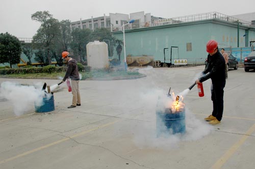 演練前,相關安全技術人員向參演人員介紹了包括干粉滅火器、二氧化碳滅火器及水基型滅火器在內的多種滅火器材的基本原理、應用范圍及操作方法,并現場進行滅火示范,同時講解了發生火災時的正確逃生方法。隨著一聲令下,參演人員手持各種類型的滅火器,對兩個正在燃燒著的鐵桶進行滅火。演練中,參演人員操作有序、動作規范,順利完成滅火任務,演練取得預期效果。