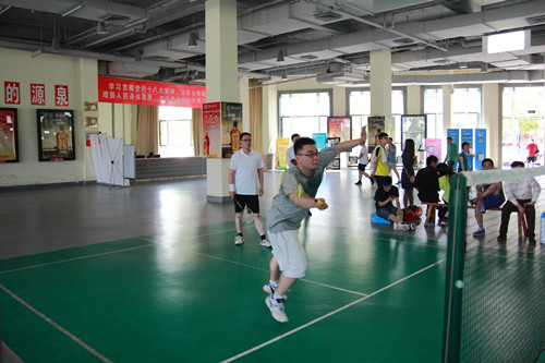 比賽當(dāng)天,參賽的、不參賽的員工就早早地來到體育中心,換上輕便運(yùn)動裝的參賽隊(duì)員更是搖身一變成了活力四射的運(yùn)動員。本次友誼賽分為男子單打、男子雙打、女子單打、混雙4個(gè)項(xiàng)目,采取三局兩勝淘汰制,先得21分為勝者。