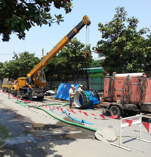 此次施工涉及范圍廣,為最大限度降低施工對供水和道路交通的影響,市政工程公司精心組織,嚴密部署,提前安排人員在公園路做好閥門開挖安全圍擋工作,然后按照既定方案,于當天上午7點準時關閉總閥,在已挖開的總管上開放水口。但因公園路總管地勢低、管線長,施工時內部自然壓力較大,導致預先設定的泄壓孔無法完全割開。市政公司主要負責人了解情況后,親赴現場坐鎮指揮,結合實際情況調整施工方案,迅速增派施工人員在暨陽山莊西側DN1500支管上開口,以減小總管壓力。經過緊張而有序地施工,下午4點30分順利完工,比預期時間提早了一個半小時。