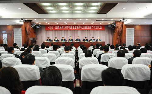 19日,公司在14樓會議室召開2015年度總結表彰大會暨三屆二次職代會。公司黨委書記、董事長龔國賢作講話,總經理沙建新作題為《新起點 新征程 創新實干實現水務事業新跨越》的2015年度總結報告,并詳細部署2016年度工作,明確各項目標任務。會議由副總經理高立主持。