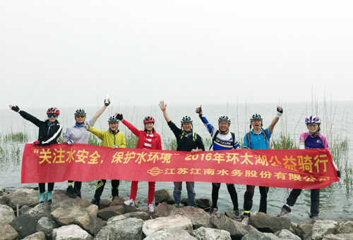 “關注水環(huán)保,保護水環(huán)境。倡導低碳生活,踐行社會責任”,4月中旬,公司9名公益環(huán)保志愿者,從江陰出發(fā),途經(jīng)無錫、蘇州、湖州、宜興,沿順時針方向開展環(huán)太湖公益騎行活動,一路倡導節(jié)約用水、低碳出行的生活理念。