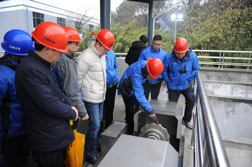 “調試開始!”12月15日,隨著小灣水廠調試總指揮一聲令下,DN1600進水閥門開啟,長江水由配水井源源不斷的進入到絮凝反應池中,小灣水廠深度處理聯動調試正式開始。