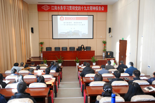 1月12日上午,公司黨委舉辦學習貫徹黨的十九大精神專題報告會,邀請中共江陰市委黨校楊赟副校長作主題報告,公司黨委委員、各支部書記、黨員及員工代表等共計120多人參加講座,公司黨委書記、董事長龔國賢主持報告會。