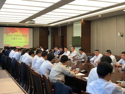 4月10日,公司黨委中心組召開專題學習(擴大)會,學習貫徹黨的十九屆三中全會精神和全國兩會精神,黨委書記、董事長龔國賢主持會議,公司黨委委員、各黨支部書記、各部門負責人參加專題學習會。