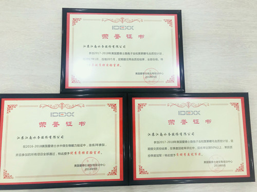 近年來,水質檢測中心在愛德士公司組織的水中微生物能力驗證及隱孢子蟲和賈第鞭毛蟲質控計劃中操作規范、質控有效、數據精準,各項成績優異。此次榮譽的獲得,充分體現了水質檢測中心在微生物檢測領域達到了國際認可的較高水平。今后,公司將以此為新的起點,進一步規范實驗室標準化管理,加強檢測技術能力建設,為江陰安全優質供水提供堅實保障。