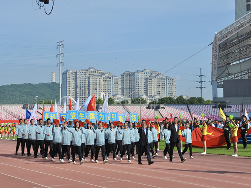 2021年10月25日上午,由公司總經理池永、副總經理高立帶領49名水務員工組成的代表隊,在市體育中心參加了市第八屆全民運動會開幕式。